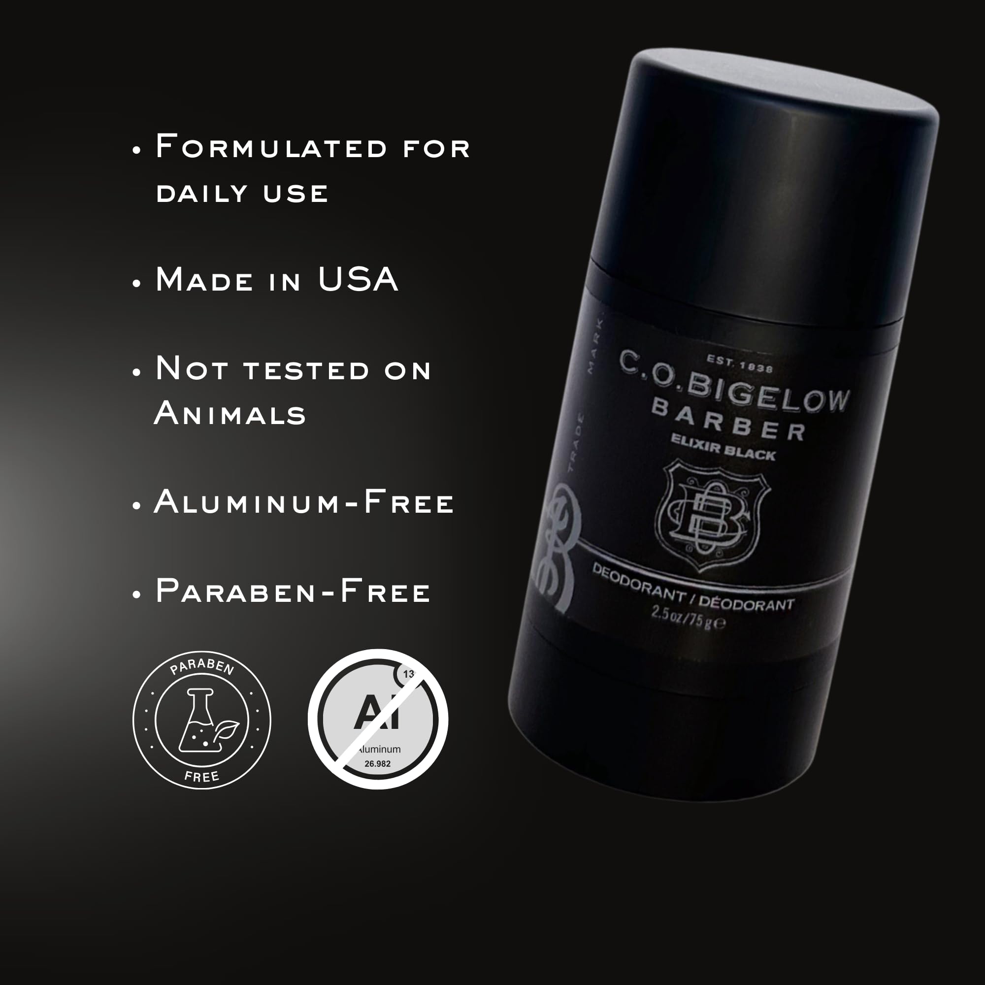 C.O. Bigelow Elixir Black Aluminum Free Deodorant for Men, Musk & Vanilla Scented Non Toxic Deodorant, Gel Stick Formula, 2.5oz